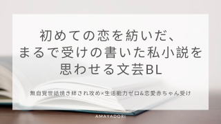 | 親友だった2人が恋人らしく関係を築いていくストーリー。 スピンオフ作品なのでシリーズで楽しめるのも魅力の1つですね! | えっちシーンは割と多めですが、全部両想い甘々えっちなのでほくほく読めます。 普段は強気な受けのハート喘ぎも可愛い! | バランスの美しい優しげな絵柄で、甘々恋人関係が多い作者さんの作風にドンピシャです! 服装などもオシャレで魅力的♬ |