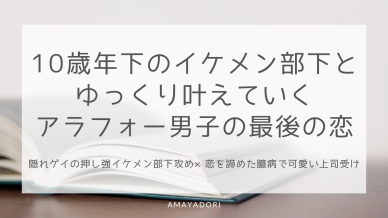 【10歳年下のイケメン部下と叶える、アラフォー男子の最後の恋愛】 \国内最大級の品揃えが魅力!DMMブックス/ 《属性》隠れゲイの押し強イケメン部下攻め×恋を諦めた臆病で可愛い上司受け《設定・世界観等...